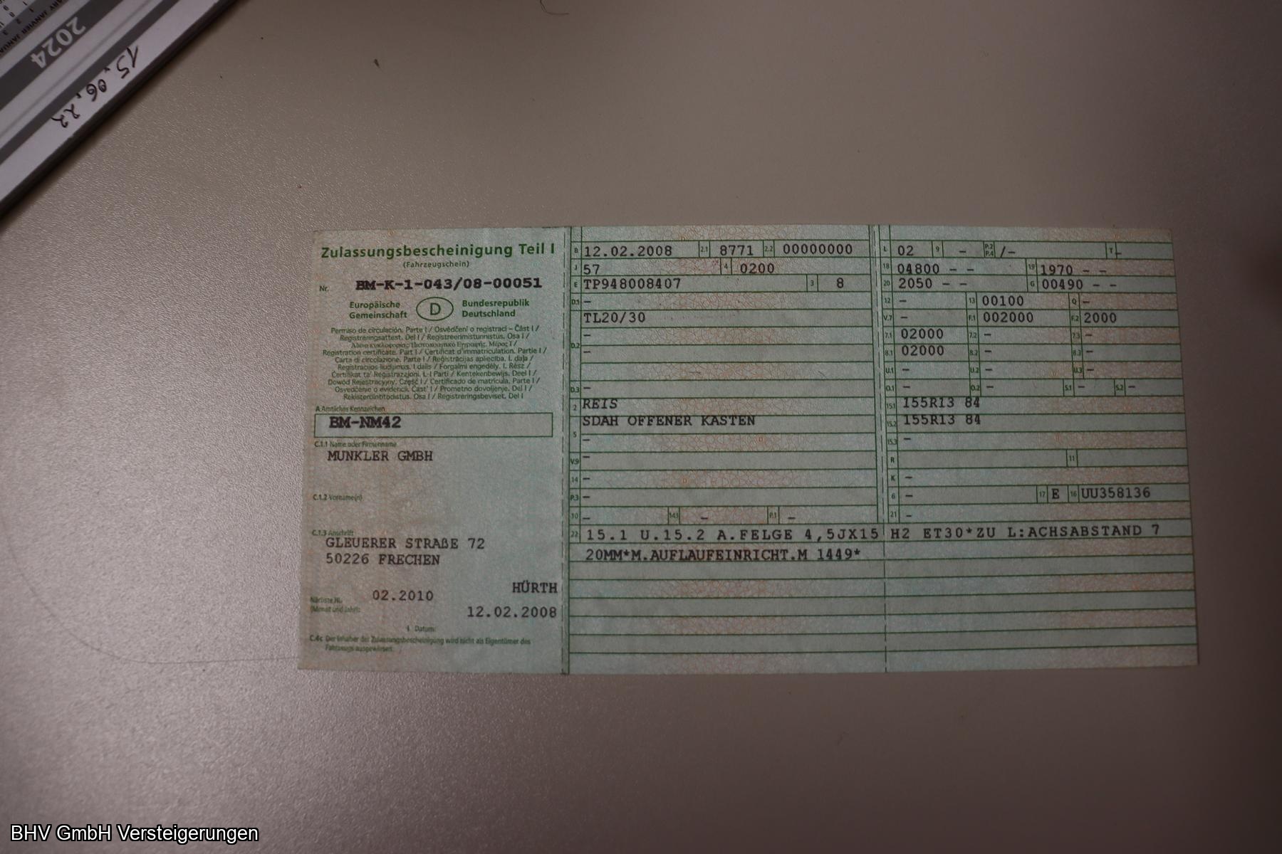 Mit Auffahrrampen. Standort: Gleueler Str. 72, 50226 Frechen Abholtermin: 25.02.2026, v. 09:00 Uhr - 16:00 Uhr
