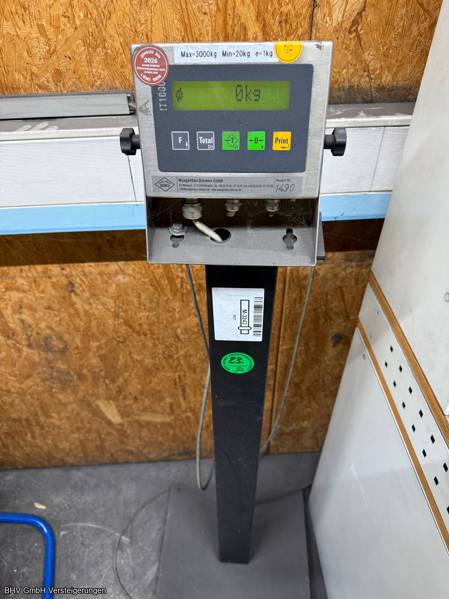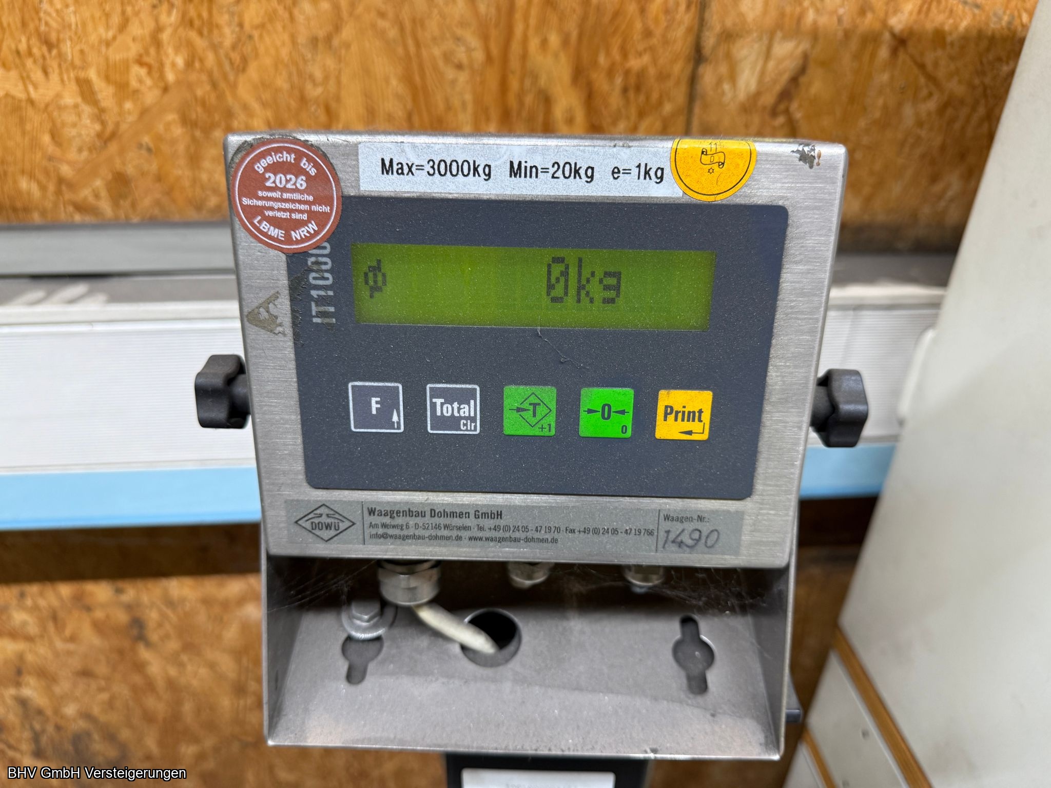 230 V, max 3.000 kg, min 20 kg, Gewichtschritte: 1,0 kg. Standort: Trierer Str. 75, 53940 Hellenthal Abholtermin: 07.05.2026, v. 09:00 Uhr - 14:00 Uhr