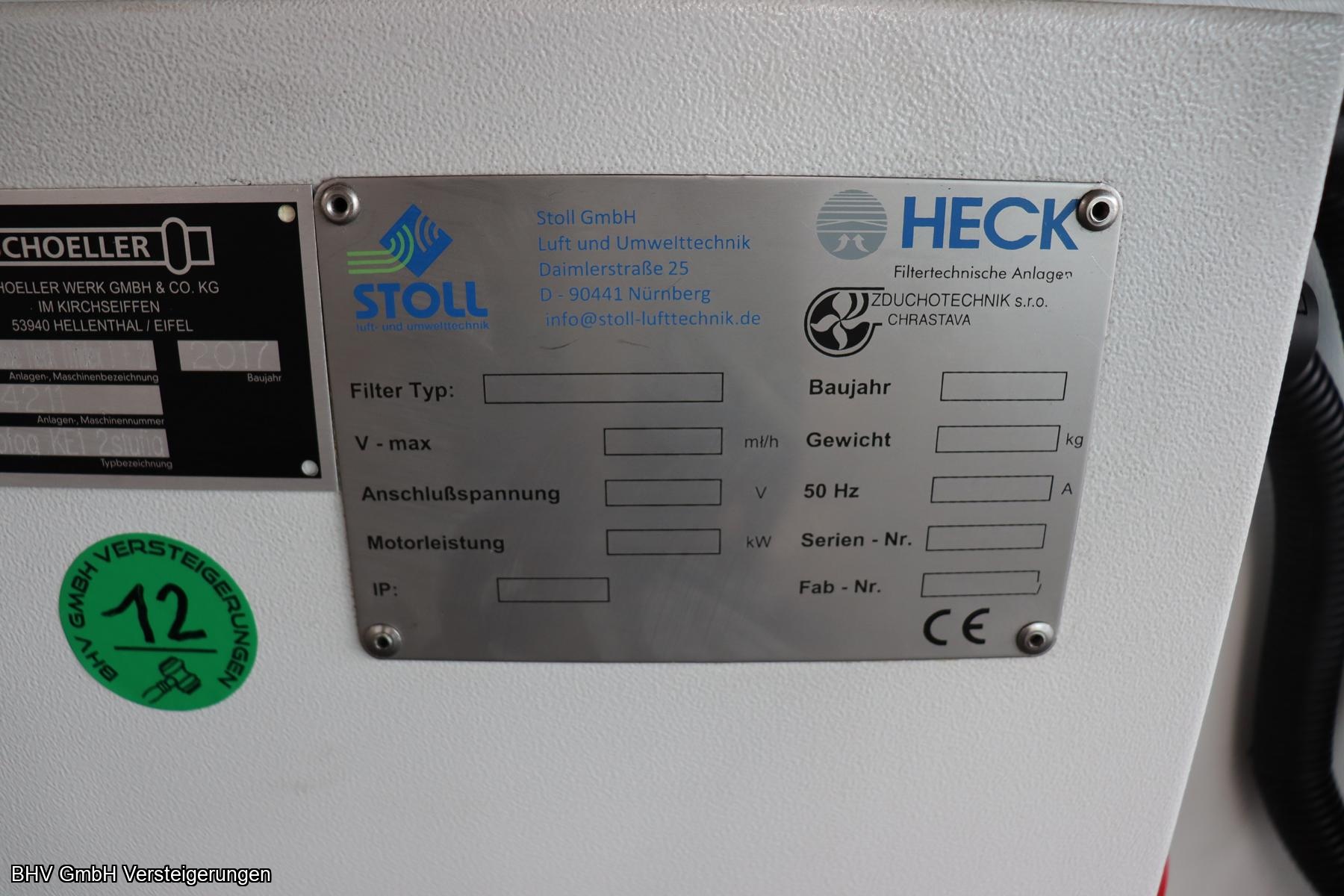 max. Volumenstrom: 1800 m³/h, Motorleistung: 0,75 kW, Spannung: 400 V, Gewicht: 120 kg, Gesamtlänge: ca. 230 cm, Bestehend aus: KE1 Zweistufige Elektrofilteranlage, Aktivkohlefiltermodul AKF, Ventilator. Standort: Trierer Str. 75, 53940 Hellenthal Abholtermin: 07.05.2026, v. 09:00 Uhr - 14:00 Uhr
